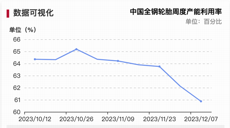 但11月以來,隨著輪胎季節(jié)性消費淡季到來,終端需求進一步弱化,尤其全鋼胎企業(yè)產(chǎn)銷壓力不斷增加,其開工負(fù)荷明顯下滑。